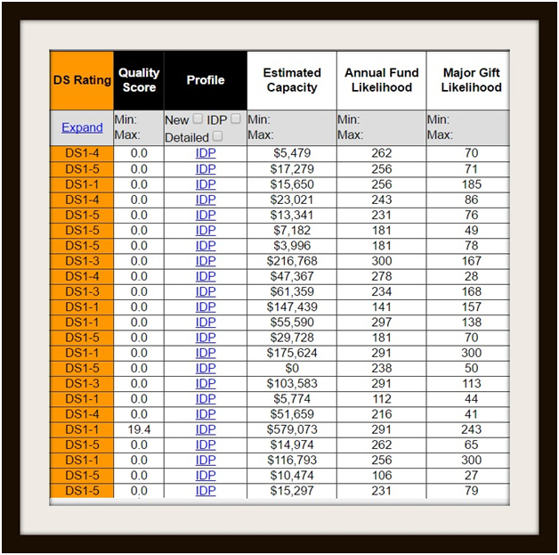 The NPOAuthoritywill screen your donors and assign each individual donor several different types of grades.